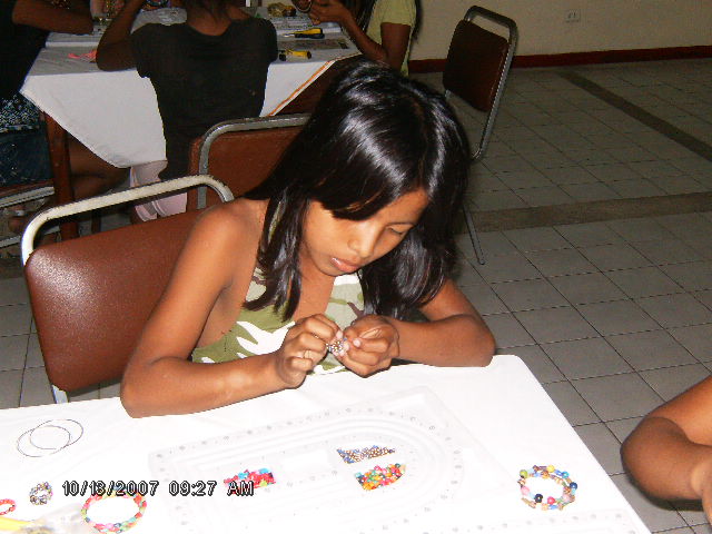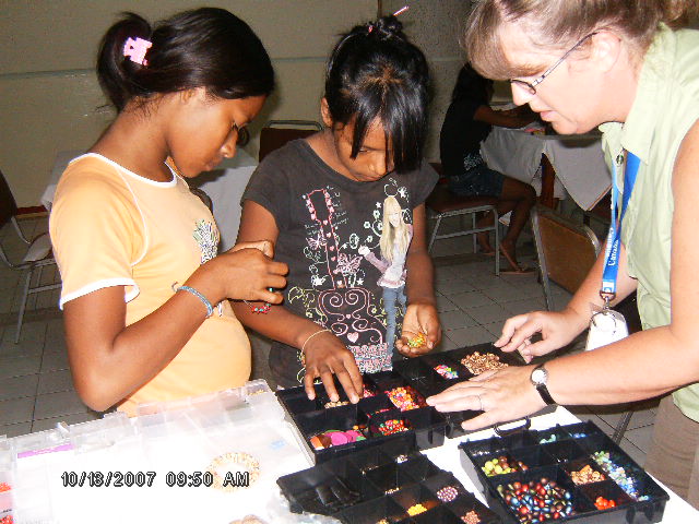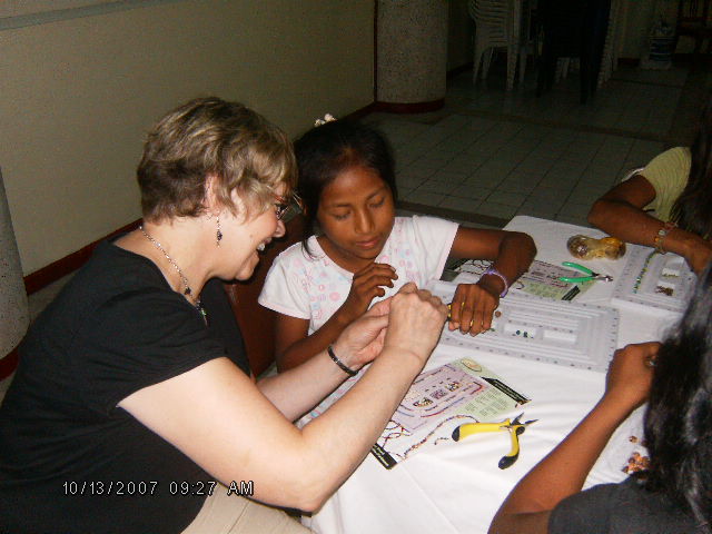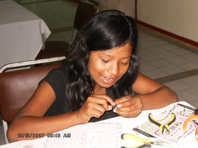 The girls not only learned how to make jewelry they learned about selling also, as the men from the team visited at the end of the workshop and bought many of the items the girls had just made, they were of course very happy about this. This was the goal of the RMCC team, that the girls would learn a way to support themselves, making and selling thier jewelry. Lydia (Pastor Jose's wife) will be holding workshops from time to time during the year for the girls, the first one will be this coming Sunday.
