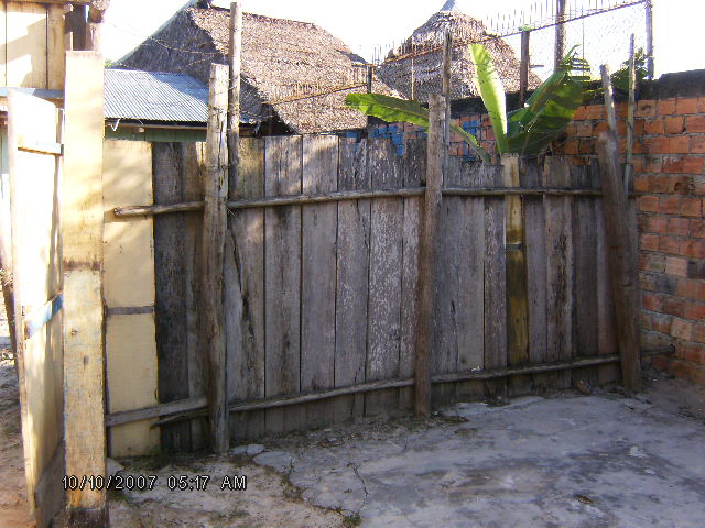 Our back fence was made of wood, because of the sun and rain here in Iquitos, wood fences are only good for two or three years. Our fence was rotted and falling apart, I didn't think it would stay up untill the RMCC team got here, but God was good to us and somehow it didn't fall down.
